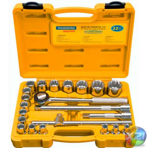 | Jogo de Soquetes de 1/2 Pol. com 22 Peças |